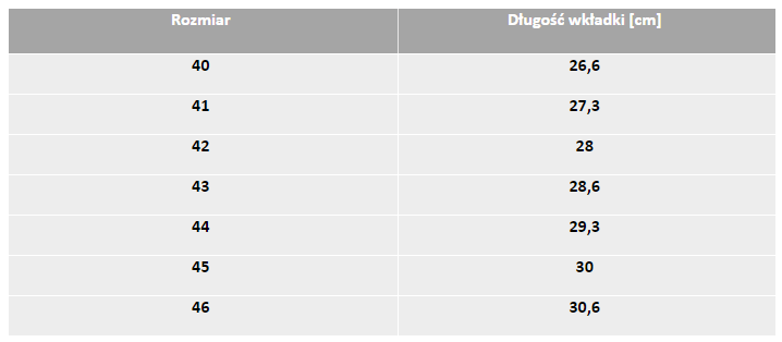 Wyściółka: wymienna (wkładki z podkładką łagodzącą nacisk stopy na podłoże).